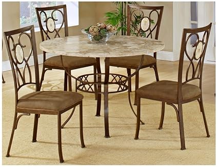 Hillsdale Brookside Round 5 Piece Dining Set With Oval Back Chairs Brown Powder Coat Finish Set Includes 1 Table And 4 Chairs