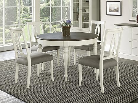 Everhome Designs Vegas 5 Piece Round To Oval Extension Dining Table Set For 4 Oval Back Chairs