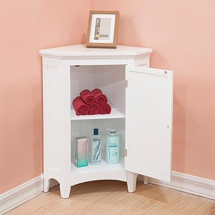 Amazon Com Corner Floor Cabinet With White Shutter Door