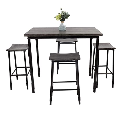 O K Furniture 5 Piece Dining Room Table Set Bar Pub Table Set Industrial Style Counter Height Kitchen Table With 4 Backless Bar Stools For Dining