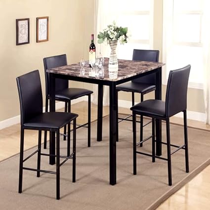 These tables are generally around 36 inches in height while the chairs can be around 41 inches tall while being able to seat between 4 to 10 people. This five piece set includes a square table and four ladder back barstools.