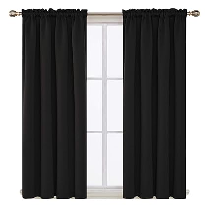 Deconovo Black Blackout Curtains Rod Pocket Curtain Panels Thermal Insulated Curtains For Dining Room 52 W X 54 L Inch 2 Panels