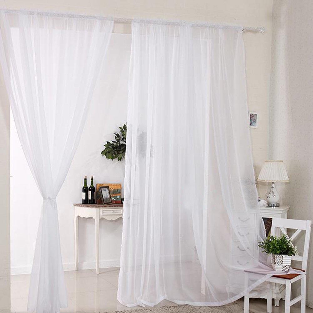 2pcs Sheer Voile Window Curtain Rod Pocket Panels White 55x90inch For Living Room Dining Room
