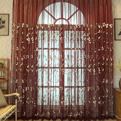 Winyy Rustic Embroidery Sheer Curtain Yarn Floral Window Curtain Rod Pocket Top Tulle For Living Room Dining Room Drape 1 Panel W40 X H63 Inch