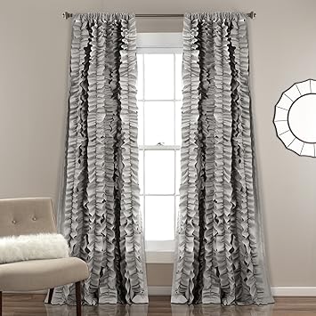 Lush Decor Ruffle Diamond Curtains Textured Window Panel Set For Living Dining Room Bedroom Pair 84 X 54 Gray