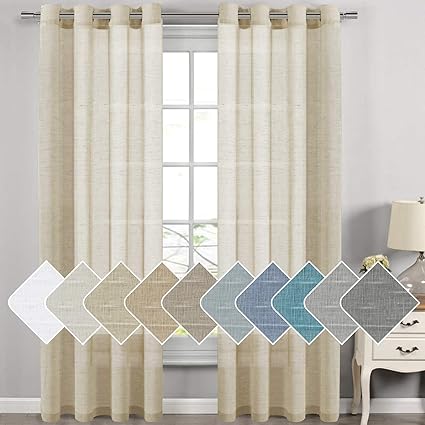 H Versailtex Natural Linen Sheer Curtains For Living Room Dining Room Extra Long Curtains Made Of Rich Linen Soft Material Nickel Grommet Window