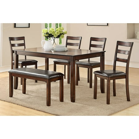 Poundex F2398 1569 1548 6 Pc Bridget Ii Dark Cherry Finish Wood Dining Table Set With Padded Seat Chairs And Bench
