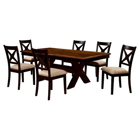 Furniture Of America Erin 7 Piece Dining Table Set Dark Oak Finish