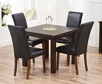 Mark Harris Sandringham Solid Dark Oak Dining Set 90cm Square Flip Top Extending With 4 Dakota Brown Chairs