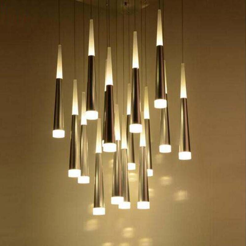 Modern Ceiling Lights Fashion Luxury Home Dining Living Room Stairs Decoration Led Ceiling Lamp Cone Tube Spiral Hanging Light