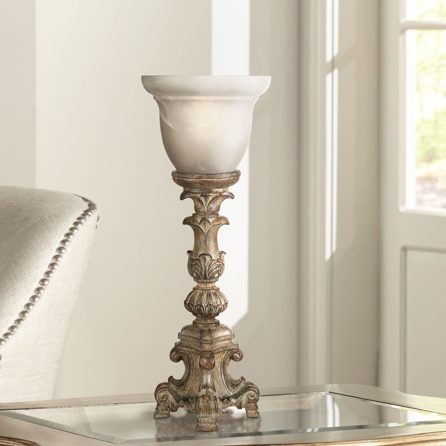 Dining room accent lamps. Accent lamps can be placed anywhere throughout your dining room to accentuate your favorite features. Adding a chandelier over the dining table will light up the faces of your guests without overpowering the atmosphere of the room. 120 low price protection guarantee double bronze 24 high console lamp by regency hill alvarium amber glass and concrete 19 12h a.