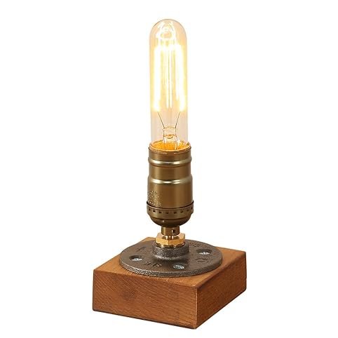 Injuicy Loft Vintage Retro Industrial Edison Bulb E27 Led Wood Table Lights Nightstand Blcak Wooden Base Desk Accent Lamps Living Dining Room Bedroom