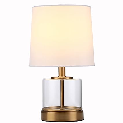 Glass Gold Table Lamp With Drum Shade Small Accent Lamp