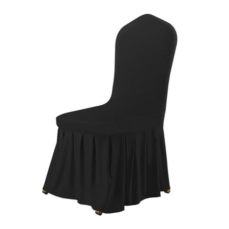 Stretch Spandex Round Top Dining Room Chair Covers Long Ruffled Skirt Slipcovers For Shorty Chair Seat Covers Black 1pc