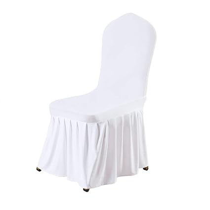 Uxcell Stretch Spandex Round Top Dining Room Chair Covers Long Ruffled Skirt Slipcover For Wedding Banquet Party Chair Covers White 1pc