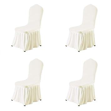 Uxcell Stretch Spandex Round Top Dining Room Chair Covers Long Ruffled Skirt Slipcovers For Shorty Chair Seat Covers Beige 4pcs