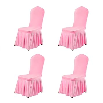 Stretch Spandex Round Top Dining Room Chair Covers Long Ruffled Skirt Slipcovers For Shorty Chair Seat Covers Pink 4pcs Newegg Com