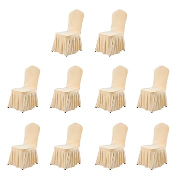 Uxcell Stretch Spandex Round Top Dining Room Chair Covers Long Ruffled Skirt Slipcovers For Shorty Chair Seat Covers Champagne Color 10pcs