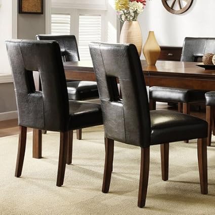 Mendoza Modern Cherry Finish Black Faux Leather Keyhole Back Dining Room Chairs Set Of 2