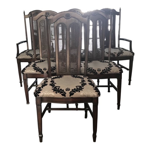 1960s Vintage French Style Victorian Cane Dining Room Chairs Set Of 6