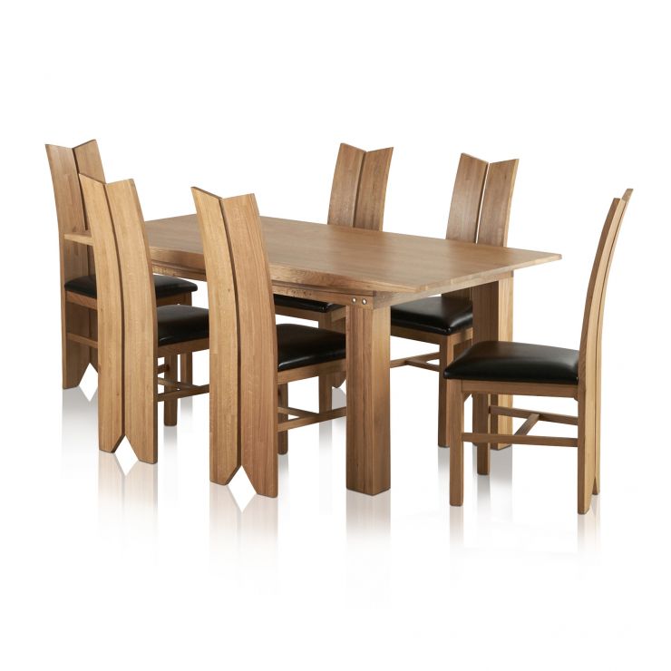 Tokyo Natural Solid Oak Dining Set 6ft Table With 6 Tulip And Black Leather Chairs