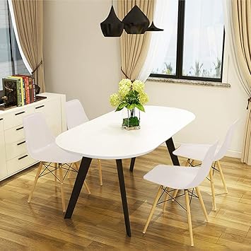 Sinwo Set Of 4 Modern Style Dining Chairs Wood Legs Plastic