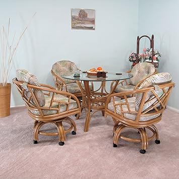 Made In Usa Rattan Chiba Dining Caster Chair Table Gaming Furniture 5pc Set