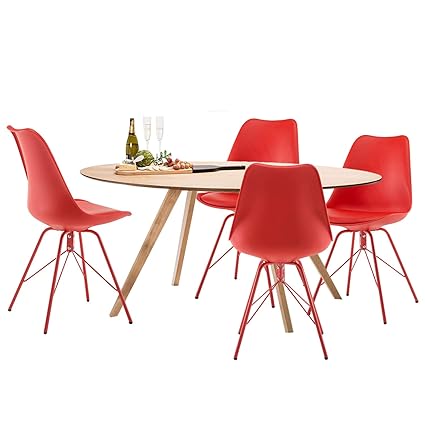 Weinerbee Upholstered Dining Room Chairs Set Of 4 With Metal Legs Casual Kitchen Chair 300 Lb Weight Capacity Red